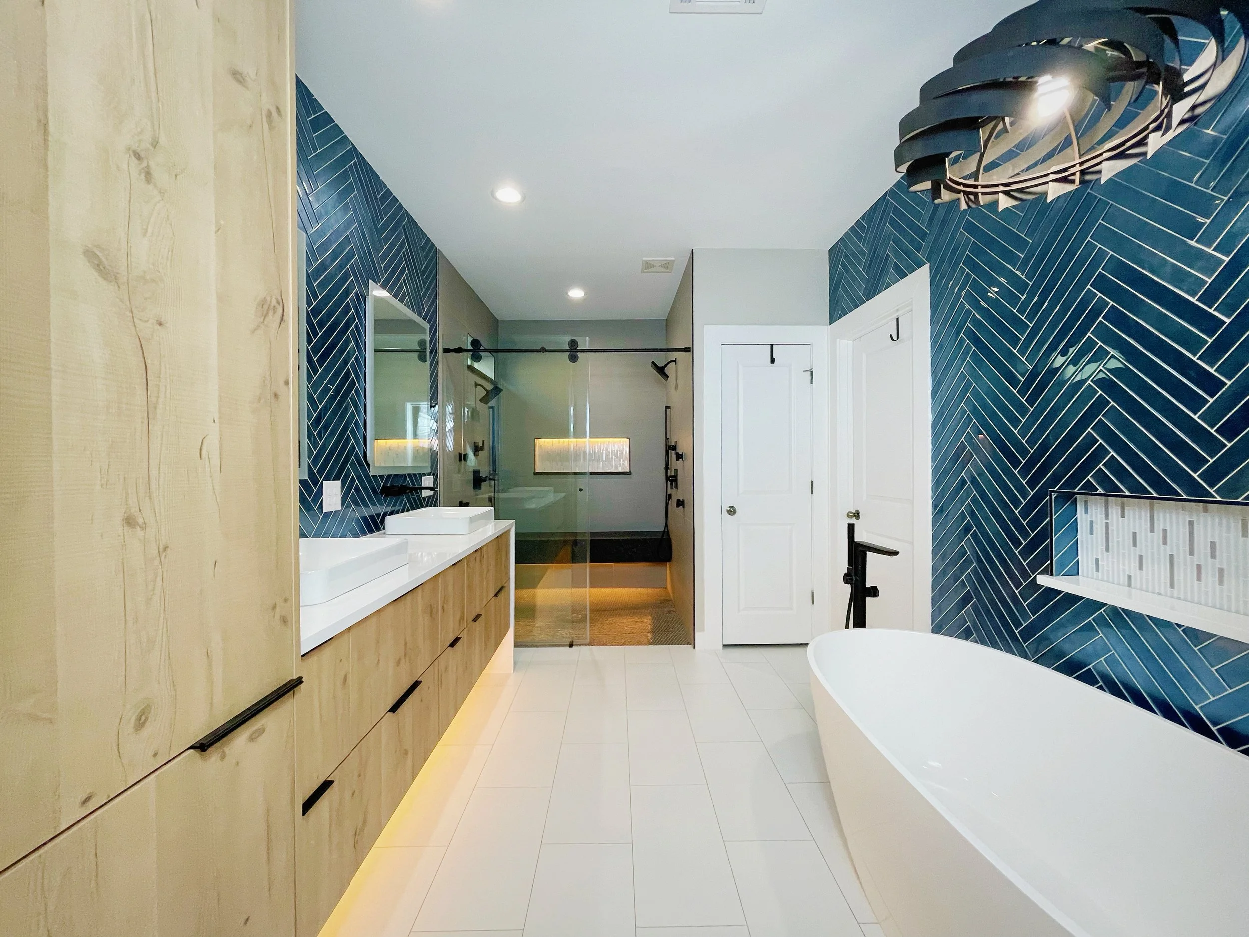 Your new bathroom is going to need new lighting, isnt it? That’s why we provide custom electrical installation services! Let’s remove those hang down fixtures for recessed lighting; or install light-up-mirrors for a subtle glow; or even replace the vent fan for an RGB Smart Exhaust!